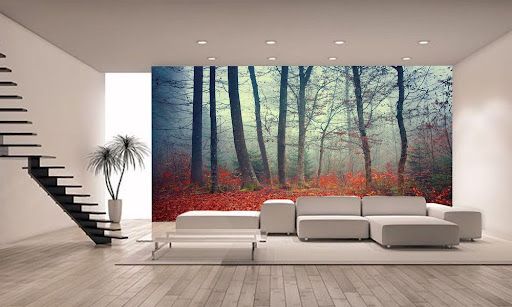 - Phòng khách: Tranh dán tường phong cảnh thiên nhiên hùng vĩ, tranh 3D về các công trình kiến trúc hay hình ảnh trừu tượng sẽ tạo ra cảm giác không gian mở rộng, cuốn hút, làm điểm nhấn ấn tượng cho toàn bộ ngôi nhà.