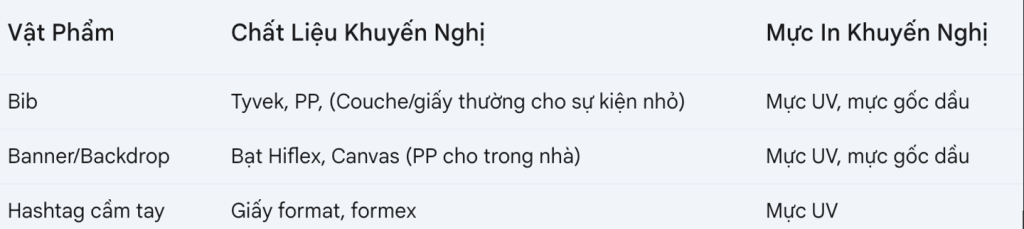 Việc tổ chức một cuộc thi chạy bộ ngoài trời đòi hỏi sự chuẩn bị kỹ lưỡng, từ đường chạy đến vật phẩm cho vận động viên. Một yếu tố quan trọng thường bị bỏ qua là chất liệu và mực in cho các vật phẩm như bib (số báo danh), banner, backdrop, v.v. Lựa chọn đúng sẽ đảm bảo chất lượng, độ bền và tính thẩm mỹ cho sự kiện. Bài viết này sẽ giúp bạn hiểu rõ hơn về các lựa chọn phù hợp.