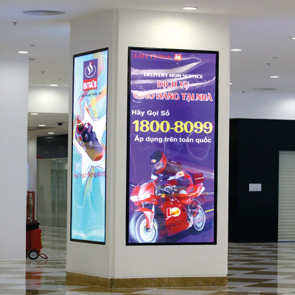 - Hộp đèn quảng cáo trong nhà: Hộp đèn tại các trung tâm thương mại, rạp chiếu phim, sân bay, nhà ga, thu hút sự chú ý của khách hàng trong không gian kín.